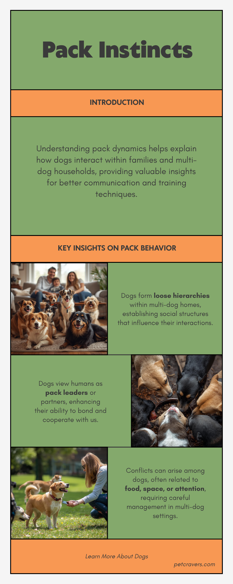 - Conflicts can occur over resources, space, or attention, but understanding pack dynamics allows owners to intervene constructively.